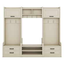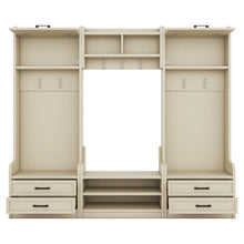 Four in one detachable hall tree with drawers and cabinets, 7 hooks, multifunctional corridor hangers, antique beige shoe stools