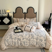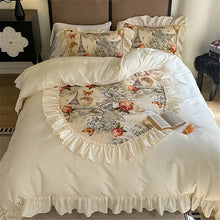 French Retro Rose Bedding Set Luxury Vintage Flower Print Ruffles Roman Cotton Duvet Cover Set Bed Sheet and Pillowcases Bed Set