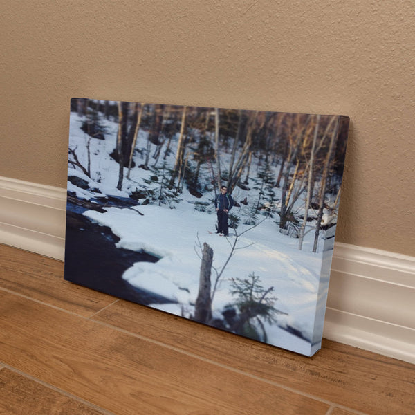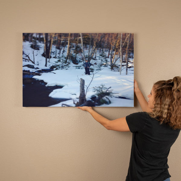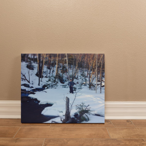 "Frozen Solitude – A Winter Wanderer's Retreat" - Gallery Wrapped Canvas - Hiking w/ Stickers '14