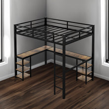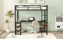 Full Metal Loft Bed with Desk and Shelves, Loft Bed with Ladder and Guardrails, Loft Bed Frame for Bedroom, Black