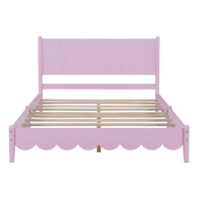 Full Size Wood Platform Bed Frame, Retro Style Bed with Rectangular Headboard,No Need Box Spring,Pink