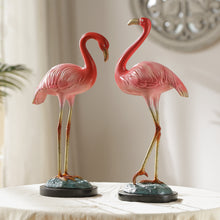 17"H Pair of Fun-Loving Flamingo Brass and Mable Sculpture