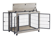 Furniture Style Dog Crate Side Table on Wheels with Double Doors and Lift Top.Grey,38.58''w x 25.5''d x 27.36''h