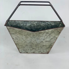 Sturdy Galvanized Metal Planter or Organizer with geometric lines and iron wire uprights. Can be used both on a desktop or hung on a wall. Great for small plants or succulents, or use for paint brushes, pencils, tools or supplies. Not water tight.