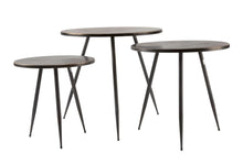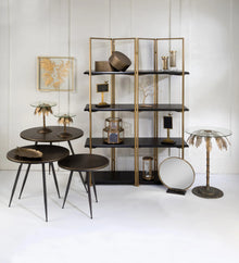 The Gold Edge Metal side tables offer elegance and versatility. This Set of Three Nesting Tables feature gold-edged detail around the rim of each table and offer great surface space....