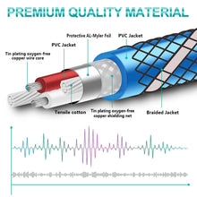 - INCREDIBLY DUREABLE: With a tested 15000+ bend lifespan, double-braided nylon audio cables adding to the durability and tangle free.Audio aux cable is made of enameled Oxygen-free copper, ensuring high fidelity sound quality and providing maximum's conductivity and durability. The stereo audio cables polished metal molding and corrosion-resistant 24K gold-plated plugs ensure reliable performance and minimal signal loss.