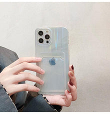Feature: Transparent Gradient Laser Love Heart Wallet Card iPhone Case