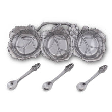 Experience the polished elegance of our Aluminum Grape Design Condiment Server for Festive Entertaining. Crafted by Arthur Court, our server is part of the Arthur Court Versatile Grape Collection for Gourmet Hosting. With its intricate grapevine designs, this server becomes a conversation piece at any gathering. Its versatile design lets you serve everything from pickles and olives to gourmet sauces and dips. It's also a Luxurious Arthur Court Grape Condiment Server for Bridal Gift. Hand-crafted from durable, FDA-compliant aluminum, this server is as functional as it is beautiful. With ample serving space, it's the ideal addition to any festive table setup.