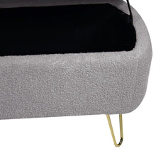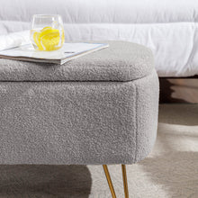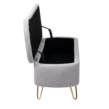 Grey Storage Ottoman Bench for End of Bed Gold Legs Modern Grey Faux Fur Entryway Bench