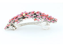 Hair barrette clip with layers of butterfly flowers and leaves embellished with two colors of rhinestones. Perfect for a party, wedding and birthdays.