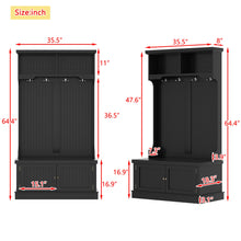4-in-1 Design- This multifunctional hall tree is an Integrated coat rack with hooks, a shoe bench, a storage cabinet, and a display shelf, designed to fit for your entryway, laundry room, closet, bedroom, or mudroom use.
