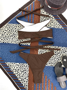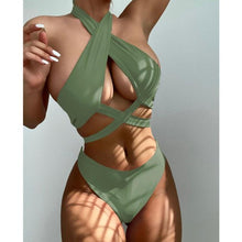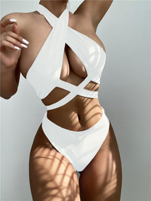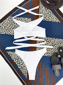- FEATURES- Solid color, halter neck, crisscross, bandage, self-tie at neck and back, sleeveless, backless, hollow out, high cut, high waist and stylish women’s two piece bikini set.