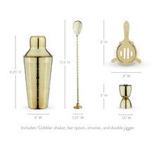- 4 piece set (includes shaker, spoon, jigger, and strainer)