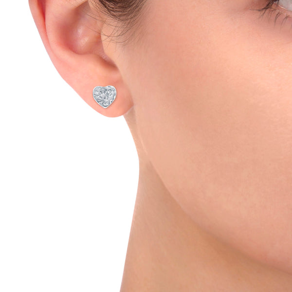 These "Hammered In Love" Heart Stud Earrings are crafted from 14K white gold plated brass and feature 8MM Heart for a timeless and elegant look. Lead and nickel-free, they make an...