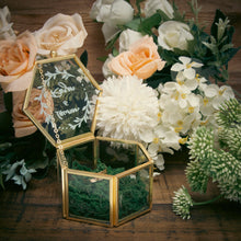 • Use fillers such as mini pebbles, flower petals, moss or even a succulent plant to nestle the wedding rings while inside.