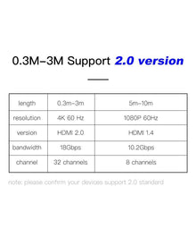 Resolution 1: 0.3-3m support 2.0 4K 60Hz