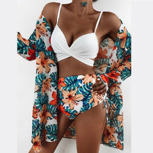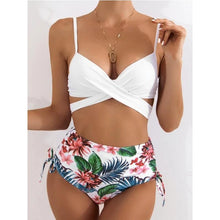 High-Waist Swimwear Set Summer Floral Print Bikini Swimsuit Beachwear Women Push-Up Bathing Suit Tie Dye 3 Pieces Strings High Cut Bikini Set Bathing Suits