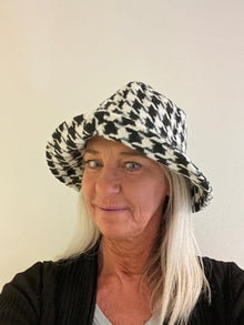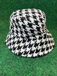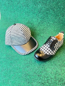 Polish your look from top to bottom with a matching houndstooth cap or bucket hat.