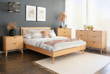 Transform your bedroom into a cozy haven with our delightful 4 Piece Bedroom Set. Crafted from the finest rubberwood and poplar wood, each piece boasts a natural lacquer finish that highlights the warm, inviting tones of the wood. The queen sized bed, adorned with an oatmeal fabric upholstered headboard, serves as the centerpiece of comfort and style. The 6 drawer dresser, 4 drawer chest, and 2 drawer nightstand provide ample storage with a touch of elegance. With weight capacities designed for your convenience (800lbs for the bed, 50lbs on top and 20lbs each drawer of the dresser, chest, and nightstand) this set ensures both functionality and charm for a dreamy bedroom retreat.