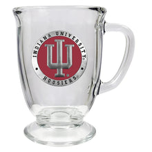 This coffee mug is decorated with a fine pewter casting. It is microwaveable and dishwasher safe with no heat cycle.. The glass coffee mug is 16 ounces, and the ceramic coffee mug is 15 ounces.