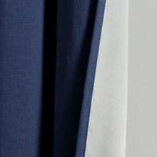 The Insulated Grommet Blackout Faux Linen Window Curtain Panel is sold by the single panel and each panel measures 84 inches long and 38 inches wide. This panel is currently offered in five color options: dark linen, navy, blue, light gray and light linen.