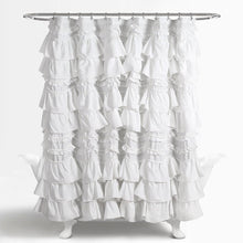 This Kemmy Shower Curtain is the epitome of every aspect needed in the home of a woman: class, style, fun and beauty all in one. The allure is enhanced with elegantly layered ruffles, further decorated with 3-D pom poms, adding lovely texture to your bathroom.
