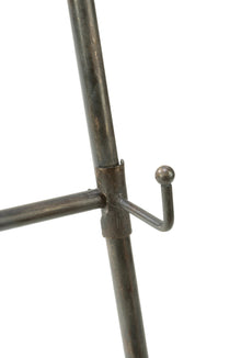 This beautiful floor easel holds a variety of items including framed artwork. It can also be used without brackets to hang towels, scarfs, or other linens. Includes 1 set of adjustable brackets. Lip depth 2.25" wide. Folds flat for storage. Color is gunmetal with hints of brushed gold.