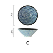 Lamian Noodles Bowl Sea Ripple Bamboo Hat Bowl Creative Large Soup Bowl Beef Noodle Bowl Home Vintage Bowl