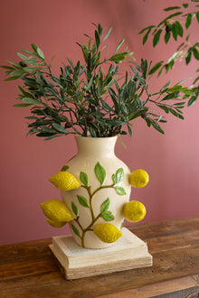 When life gives you lemons, pull out the lemon vase. Pair it with the smaller strawberries vase or let it stand out alone. Favorite fronds or empty, this vase brings joy.