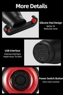 - INTELLIGENT BRAKE SENSOR: A build-in integrated accelerometer ensures accurate brake detection. With the brake sensor, When you brake, the blinking mode selected by you will instantly become steady on, and then it will automatically switch to the original mode which you choose. The bicycle light is super bright and highly visible from a distance, really catch attention to enhance your safety.