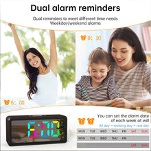 LED Wood-Grain Wooden Clock, RGB Color-Changing Dimming, Daylight Saving Time & Week Display, Desktop Electronic Alarm Clock
