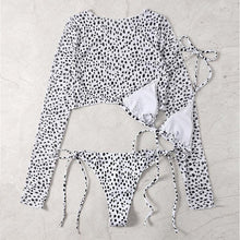 Leopard Print 3 Piece Set Long Sleeves Swimsuit 3 Piece Swimsuit Set Halter High Waist Bathing Suit With Long Sleeve Swimwear Cover Up Women's Swimming Bikini Low Waist Swimwear Women Bathing Suit