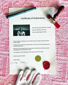 When you invest in this extraordinary artwork, rest assured that it will be protected and delivered with the utmost care. The print is securely packaged in a custom-made wooden crate, ensuring its safe journey to your doorstep. Optional insurance is available for worldwide shipping, providing added peace of mind. Each package is sealed with the unique wax seal of George Tatakis, further safeguarding its integrity.
