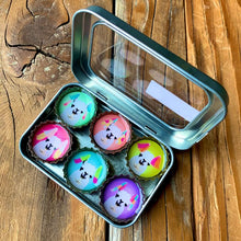 Each magnet set comes in the display tin (just like in the picture) and the magnets are strong enough to hold the entire tin on a magnetic surface for display.
