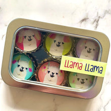 Six-pack set of Llama themed magnets, made in the USA from recycled bottle caps. Our magnetic expressions make fabulous and unique gifts and can be used in the kitchen, office or on any magnetic surface.