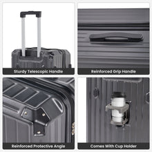 Luggage Set 4 pcs (20"/24"/29"/Travel Bag), PC+ABS Durable Lightweight Luggage with Collapsible Cup Holder, TSA Lock, Gray