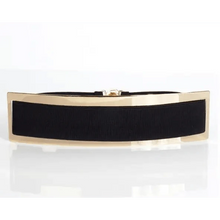 Luxurious Gold Wide Strap Elastic Belts For Women Elegant Metal Polished Plain Gold Belt Black Wide Strap Waistband for Women