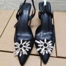 - CRYSTAL DECORATION: Luxury pointed toe with bling rhinestone decorations. Classic open heel and open toe style is easy to slip on and off.