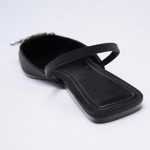 Luxury Black Straps Black Shoes For Women Shallow Summer Heels Beige Elastic Band Low Pointed Closed Flat Rhinestone Slip-on Shoes Flats Outdoor Walking Slippers