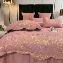 Luxury Embroidery European Style Cotton King Queen Size 4pcs Bedding Set Duvet Cover Bed Sheet Pillowcase 2020