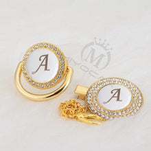 Luxury Modern Diamond Pacifier and Chain Gold Set With Initials Letter White Elegant A Beautiful Pacifier and Pacifier lip