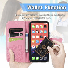 Luxury Pink Butterfly Flower Wallet Flip Case For iPhone 14 Pro Max 13 12 Classic Simple Leather Wallet Case with Card Holder Kickstand Wrist Strap Flip Cover for iPhone