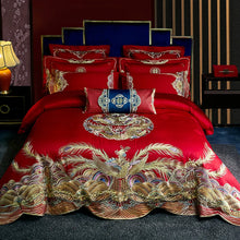 Luxury Red Chinese Wedding Phoenix Embroidery Cotton Bedding Set Duvet Cover Bed Linen Fitted Sheet Pillowcases Home Textiles
