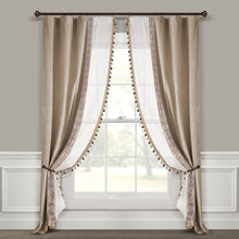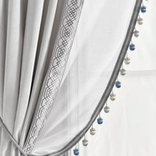 Luxury Vintage Velvet & Sheer With Border Pompom Trim Window Curtain Panel