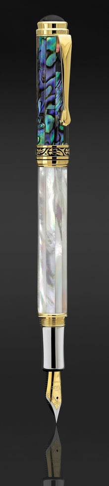 Maestro® 18K Gold Plated Fountain Pen (Fine Nib) - Oceanic White Mother of Pearl & Paua Abalone
