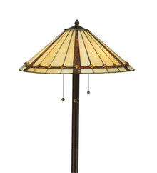Exquisite Purple and Sunburst colored trim with Amber jewels adorn Beige Iridescent glass on this conical lamp shade. This stunning shade is constructed with Meyda Tiffany's famous copperfoil construction process....