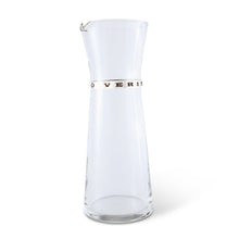 Vagabond House's pewter embellished glass In Vino Veritas Wine Carafe is crafted in a modern open carafe style. A pewter collar is inscribed with the Latin phrase In Vino Veritas, in English, we would say In wine, there is truth.