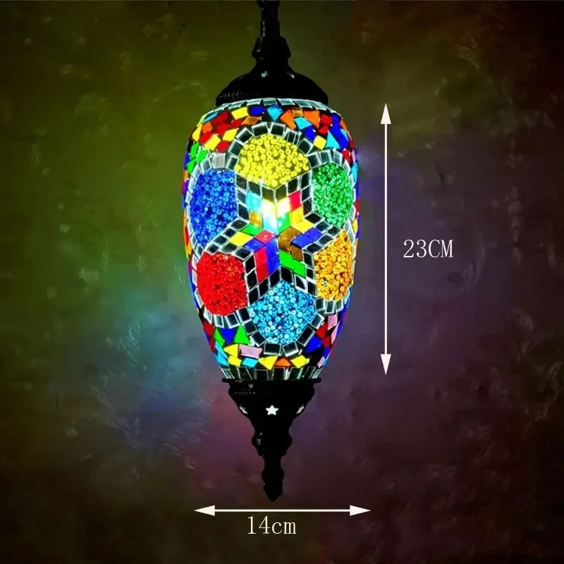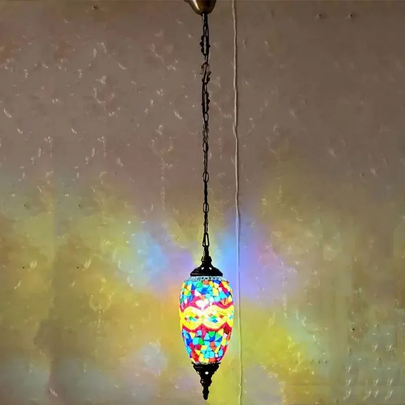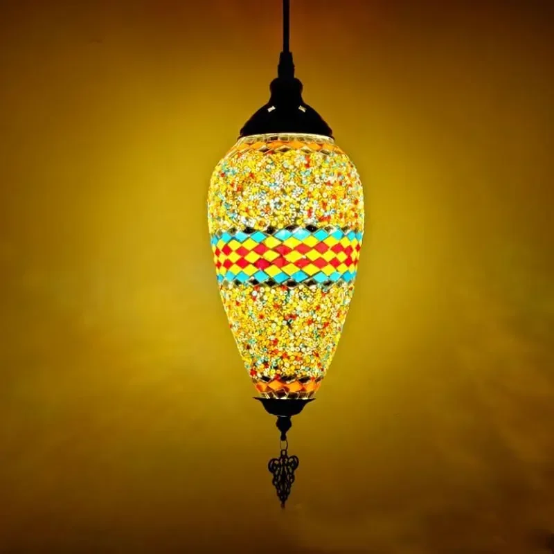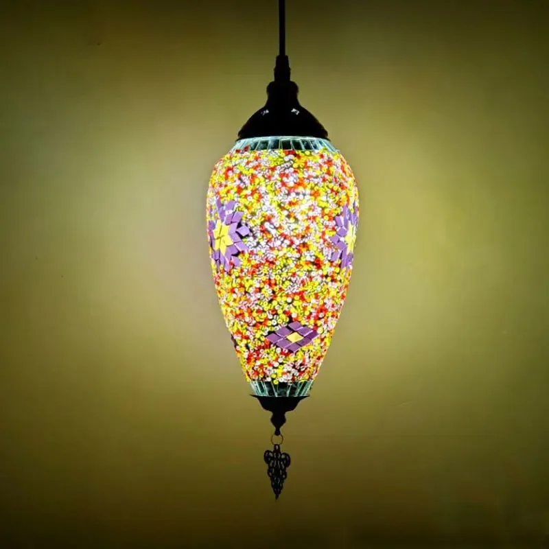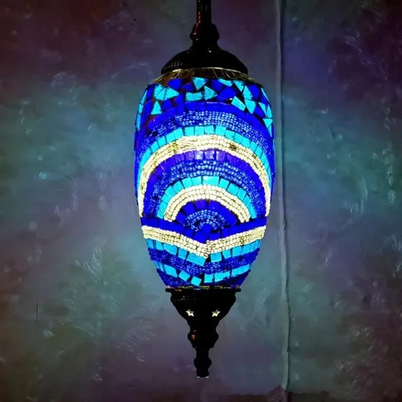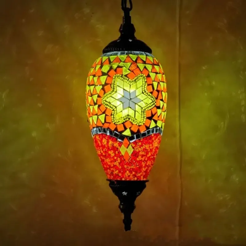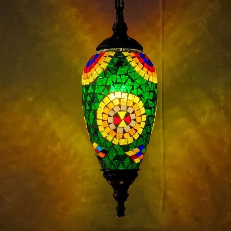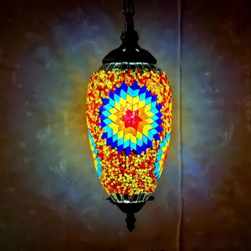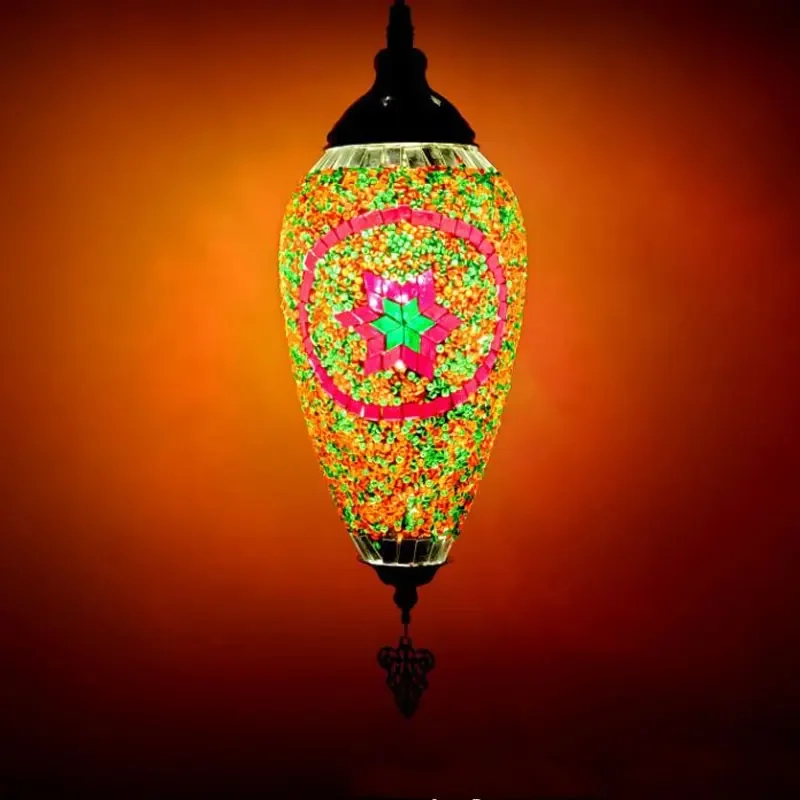 Mediterranean Art Pendant Light Turkish Mosaic Retro Ceiling Chandelier Decoration Lighting Fixture Dining Room Hanging Lamp LED