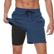 Men's Swimming Trunks with Compression Liner 2 in 1 Quick-Dry Gym Sports Shorts Swim Shorts with Pockets Beach Swimming Trunks Quick Dry Swim Shorts with Pockets