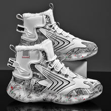 Men's trendy luminous running shoes student graffiti high-top shoes plus velvet warm sports shoes